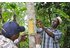 Auf dem Foto sind zwei Männer zu sehen die die Zimtrinde vom Zimtbaum lösen.
