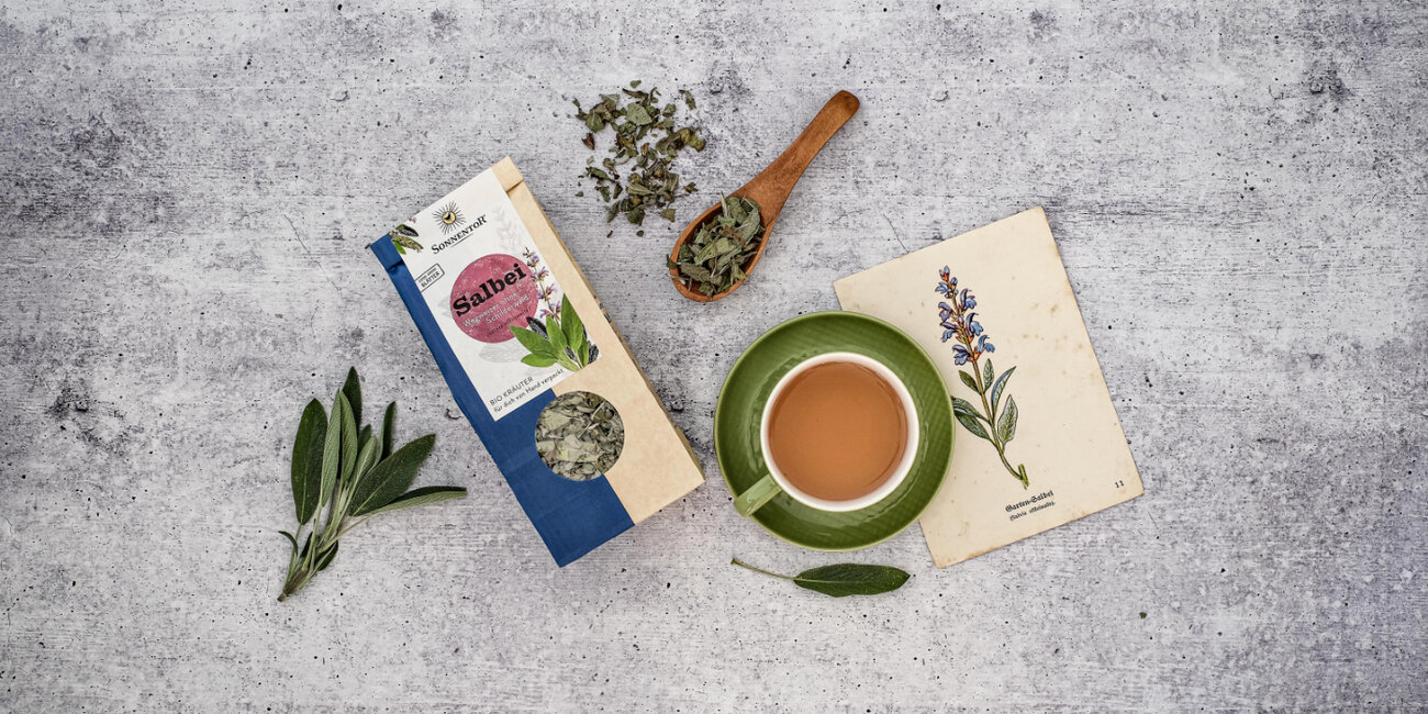 Neben seiner Verwendung als Gewürz hat Salbei auch als Tee echte Berühmtheit erlangt. Zu Recht, denn Salbeitee bringt vor allem in den kalten Wintermonaten die passenden Inhaltsstoffe mit. Besonders mit ein wenig Honig verfeinert verjagt er rasch den Frosch im Hals. Salbeitee hat aber auch geschmacklich einiges zu bieten und ist kalt oder lauwarm ein wunderbarer Begleiter zu mediterranen Speisen. Zum Wohle!